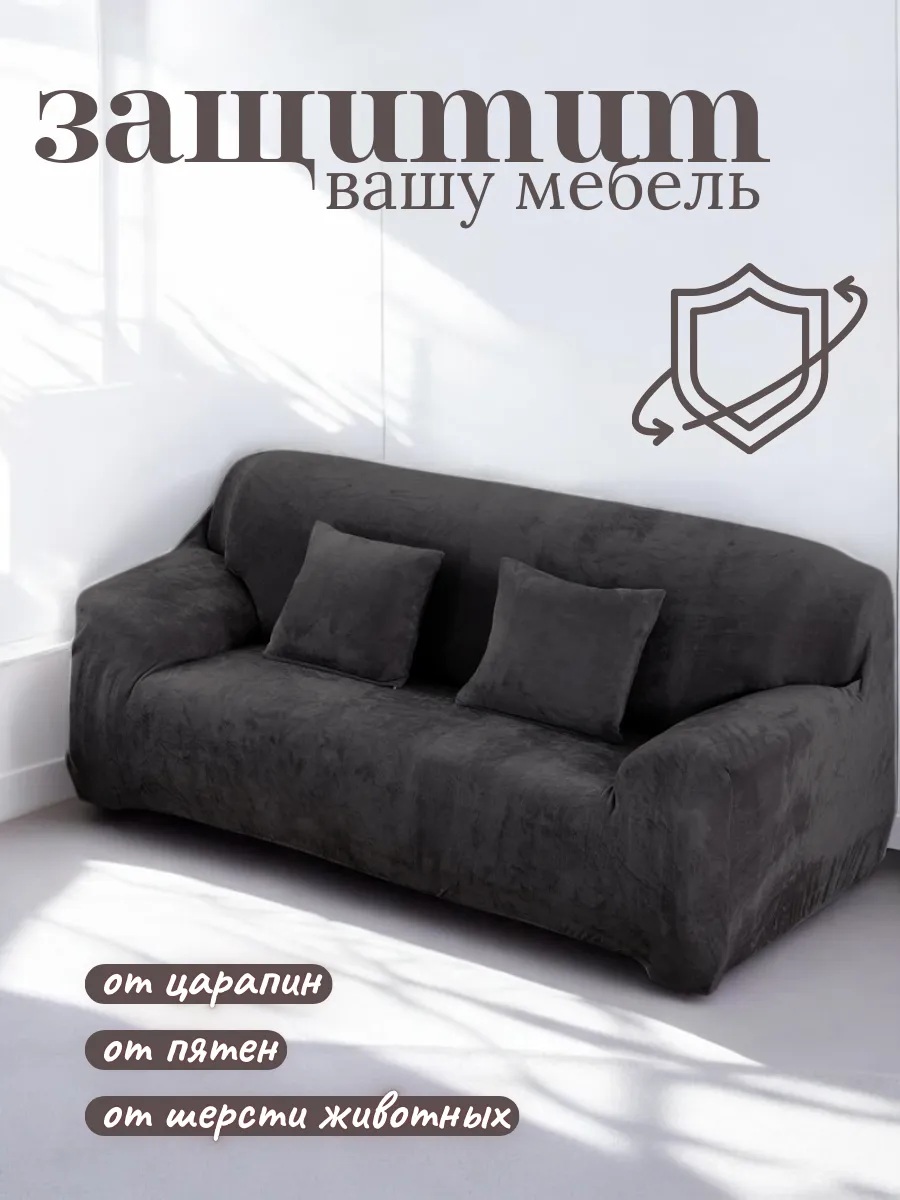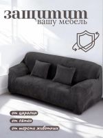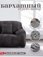 Чехол на 3-х местный диван без оборки Бархатный Велюр (мех) ,мокрый асфальт
