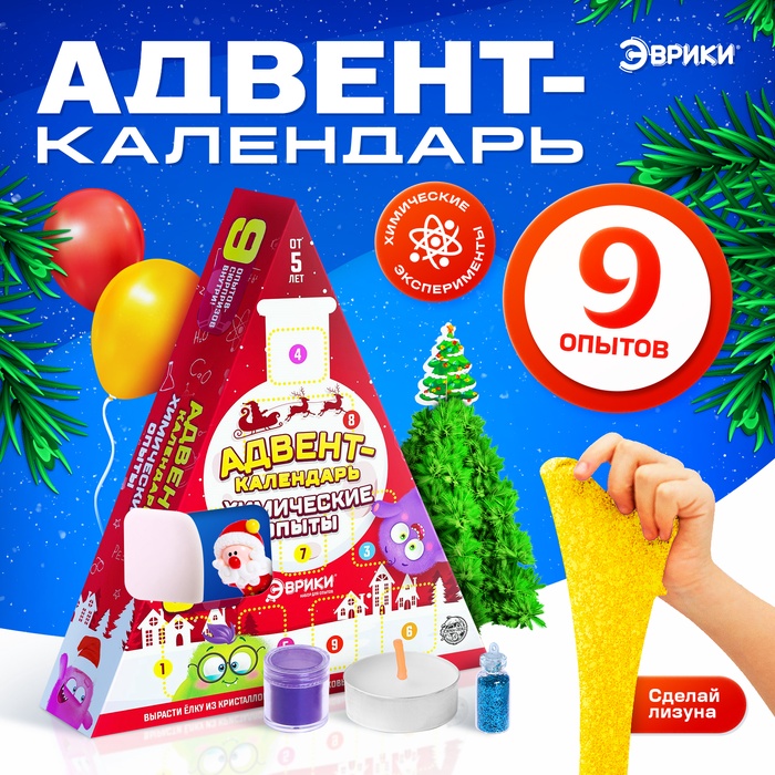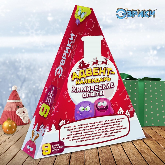 Адвент - календарь новогодний «Химические опыты», детский, 9 окошек с подарками: 9 опытов