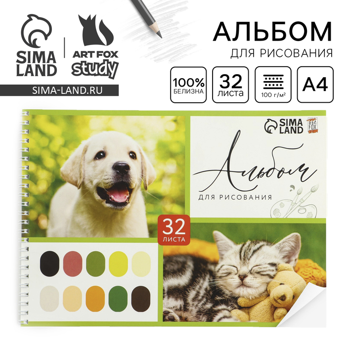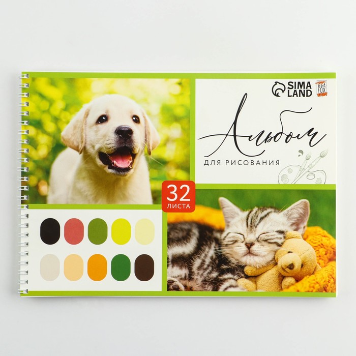 Альбом для рисования А4 32 листа на пружине «Зверята» обложка 200 г/м?, бумага 100 г/м?