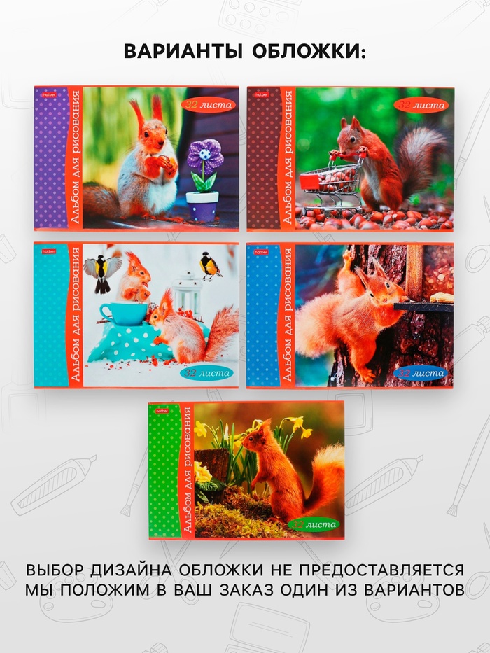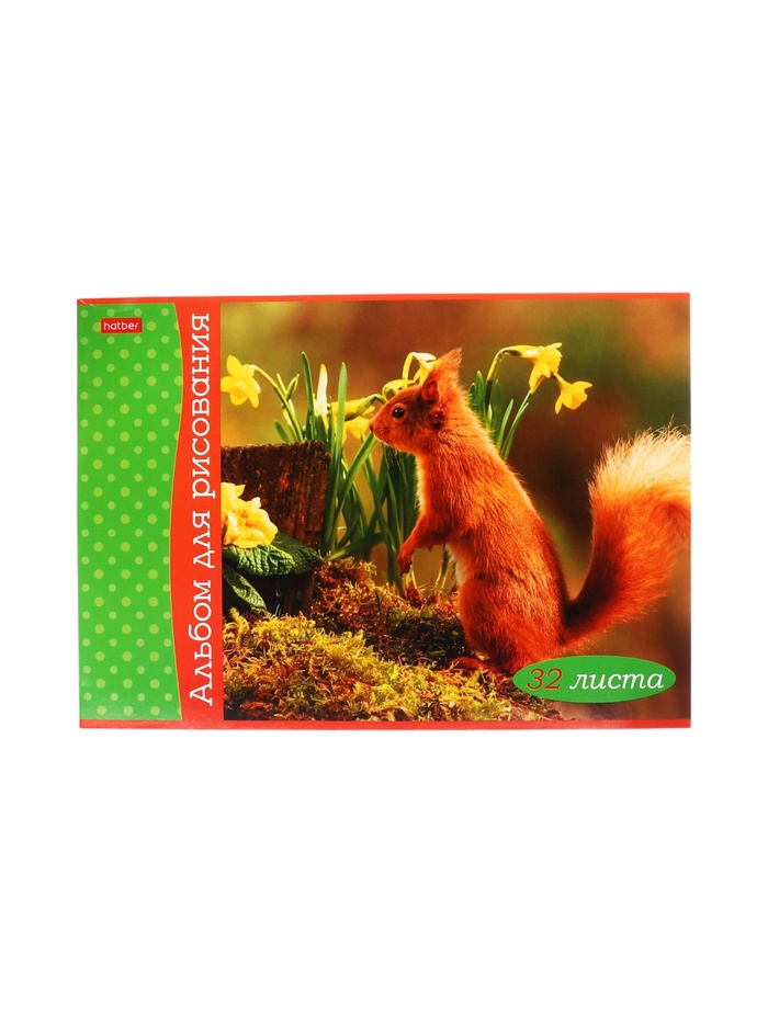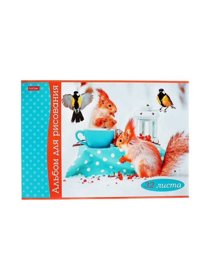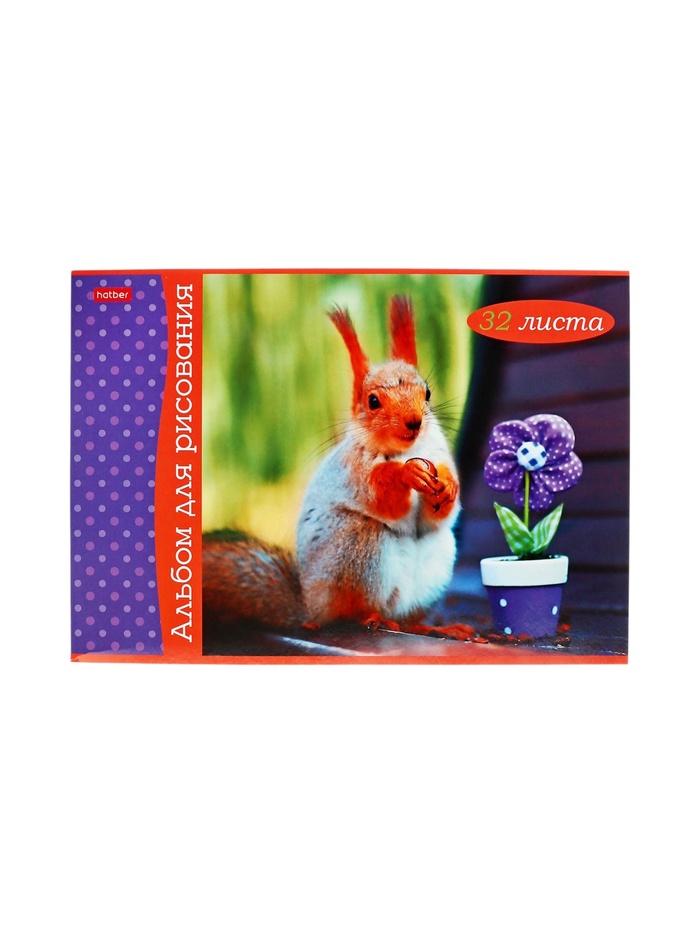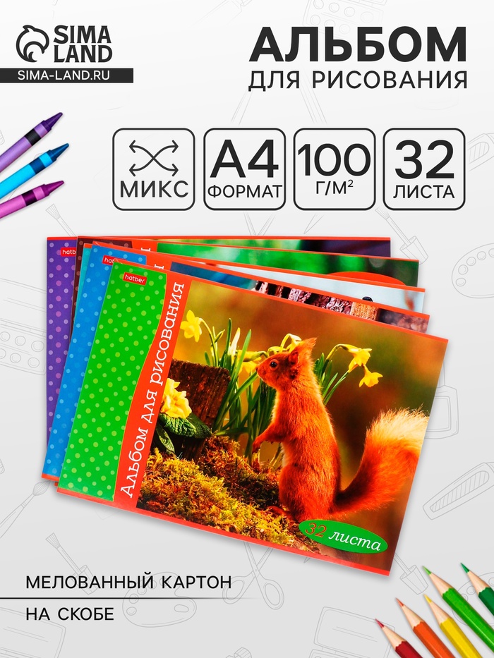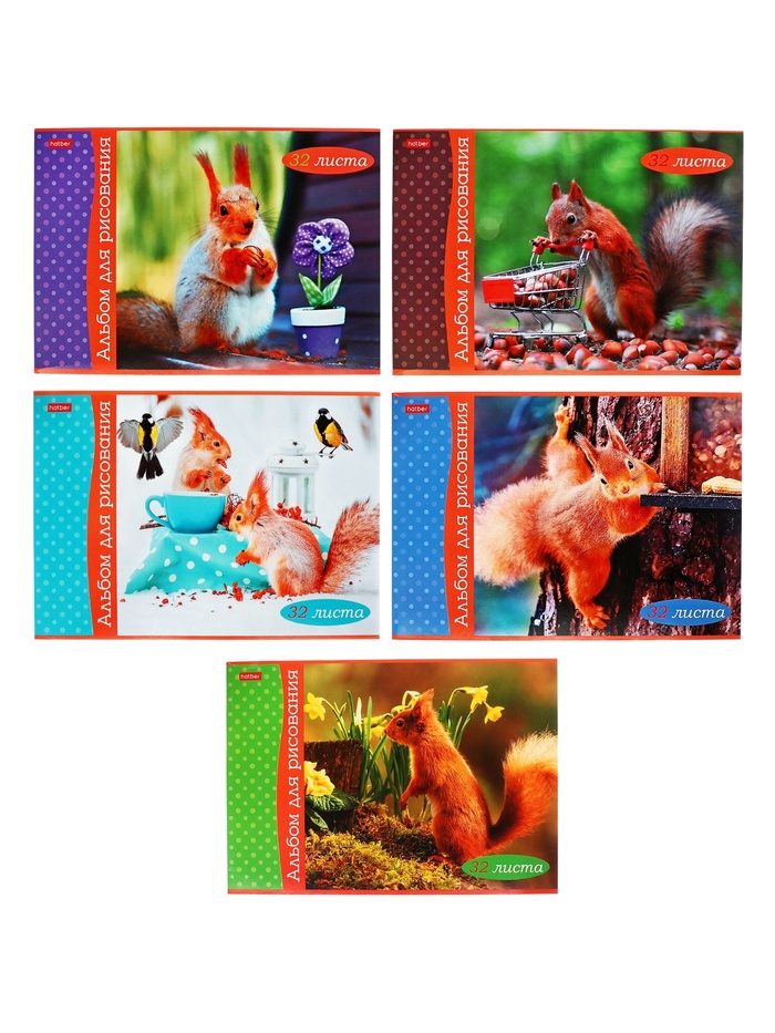 Альбом для рисования А4, 32 листа на скобе Hatber «Белочка пришла», обложка мелованный картон, блок офсет, МИКС 5 видов