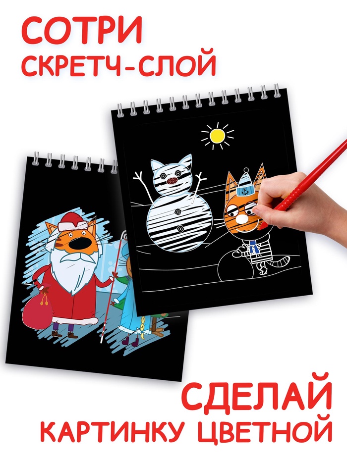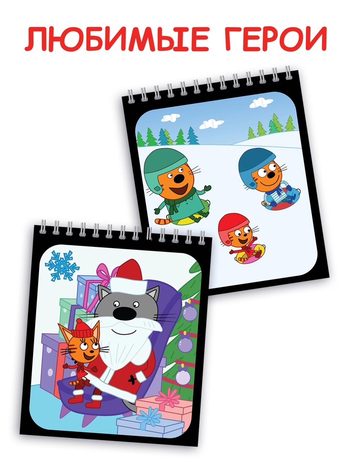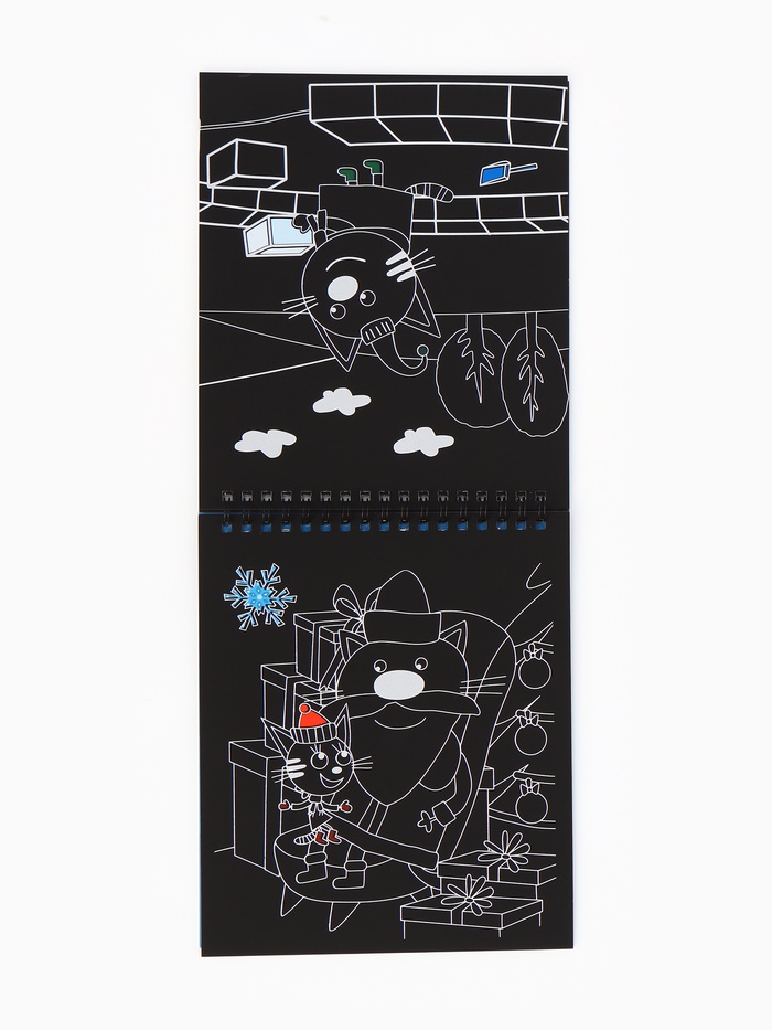 Альбом гравюр «Новый год», 8 гравюр, цветной фон, Три кота
