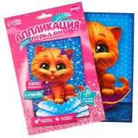 Аппликация перьями и стразами для детей «Котик», набор для творчества