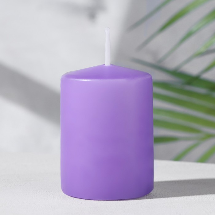 Набор|Нет;Цвет|Сиреневый;Ширина, см|4;Высота свечи, см|6;Время горения, ч|8;Форма свечи|Цилиндр;Ароматизированные|Да;Аромат|Лаванда;Состав|Парафин;