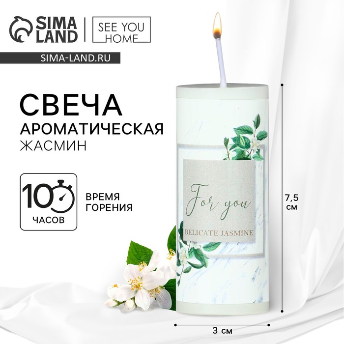 Ароматическая свеча столбик For you, жасмин, 3?7.5 см