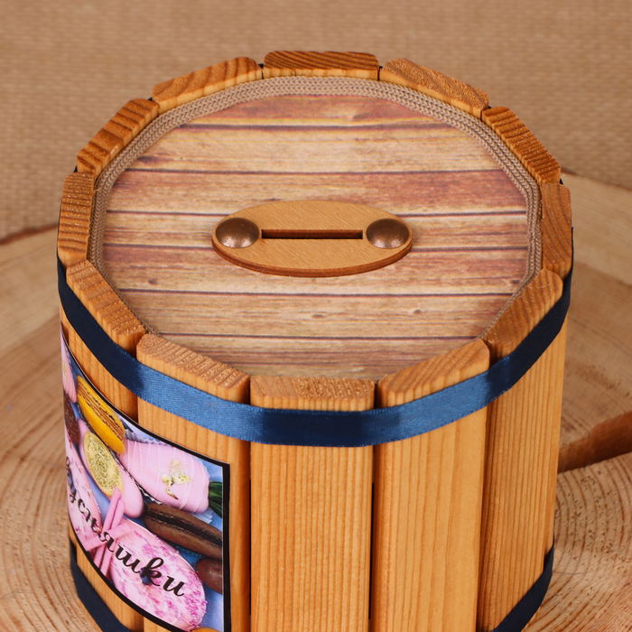 Цвет|Разноцветный;Высота, см|12;Тематика|Сладости;Тематика|Надписи, цифры, буквы;Материал|Дерево;Покрытие|Без покрытия;Тип копилки|Закрытый;Уточняющий вид|Бочка;