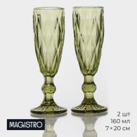 Бокалы для шампанского Magistro «Круиз», 160 мл, 7?20 см, стекло, зелёные, набор 2 шт