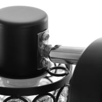 - Контраст и строгость: Металлическое основание и черный стеклянный цилиндр создают графичный образ. Такой светильник легко вписывается в интерьеры в стиле модерн, хай-тек и минималистичный лофт.