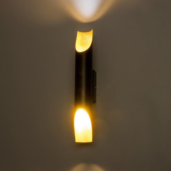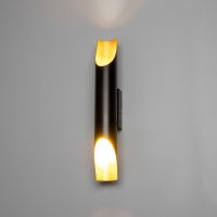 Особенности использования: Два направленных источника света позволяют подсветить рабочую зону или создать акцентное освещение. Черно-золотая гамма гармонирует с бетонными, деревянными и металлическими поверхностями. Удачное решение для кухонного фартука, изголовья кровати или зоны отдыха в гостиной.