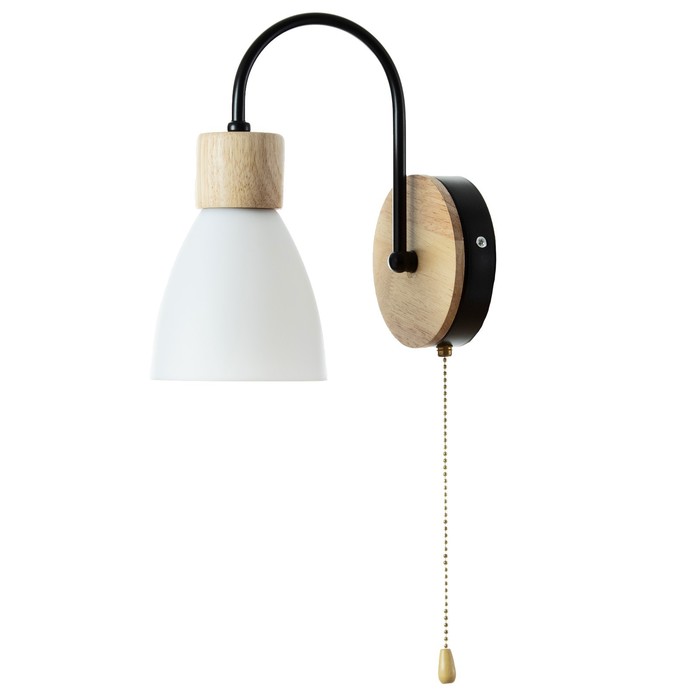 • Тепло дерева и строгость металла: Основание выполнено из комбинации дерева и металла, что добавляет изделию фактурности и естественности. Белый цвет плафона усиливает световой поток и делает его мягче.