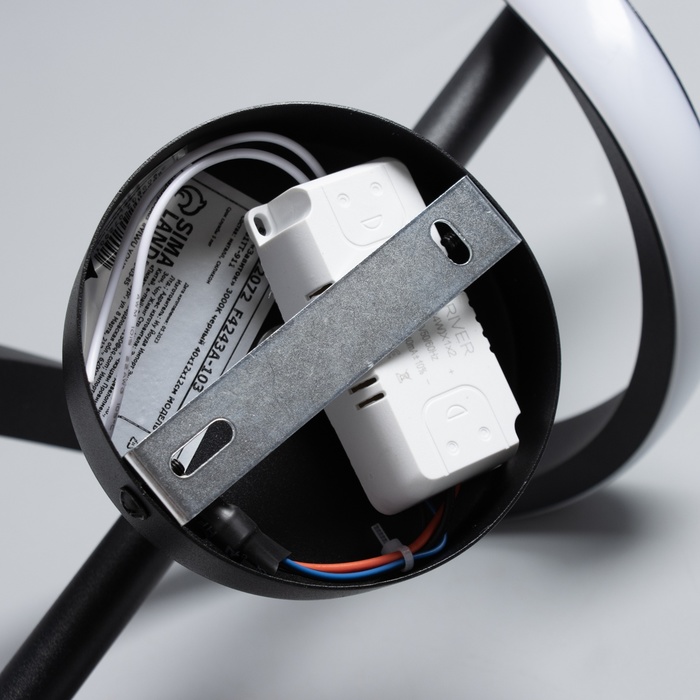 - Металлическая конструкция в чёрном цвете: Основание и рассеиватель выполнены из прочного металла. Чёрный цвет придаёт изделию графичности и делает его заметным акцентом в интерьере.