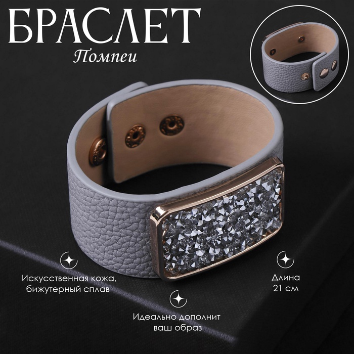Набор|Нет;Цвет|Серый;Для кого|Для женщины;Длина, см|21;Тематика праздника|Универсальная тематика;Материал|Искусственная кожа;Цвет фурнитуры|Золотой;Вставка|Стразы;Вставка|Металл;Ручная работа|Нет;Материал основания|Искусственная кожа;Материал основы|Искусственная кожа;Цвет вставки|Белый;