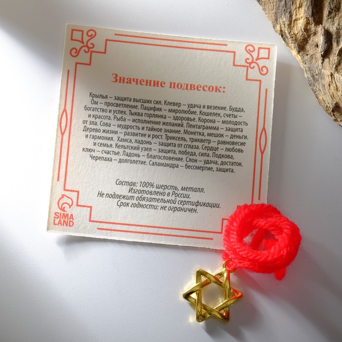 Браслет-оберег «Красная нить» со звездой Давида и молитвой, цвет золото, 35 см