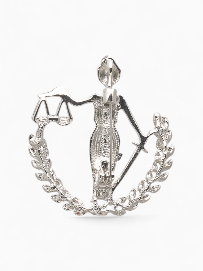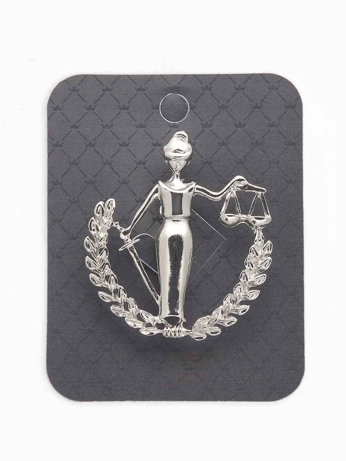 Серебристая брошь в образе богини правосудия — символ справедливости и мудрости, воплощённый в изящном металлическом изделии длиной 4,5 см. Минималистичный дизайн без вставок подчёркивает сдержанную элегантность и глубокий смысл, делая украшение универсальным аксессуаром для женщин, ценящих символику и стиль.