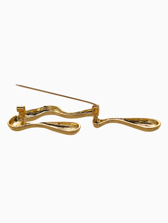 Отсутствие вставок подчёркивает минимализм и изящество изделия, позволяя металлу с золотым оттенком играть главную роль. Такая брошь станет стильным украшением для тех, кто ценит оригинальность и лаконичность в деталях.