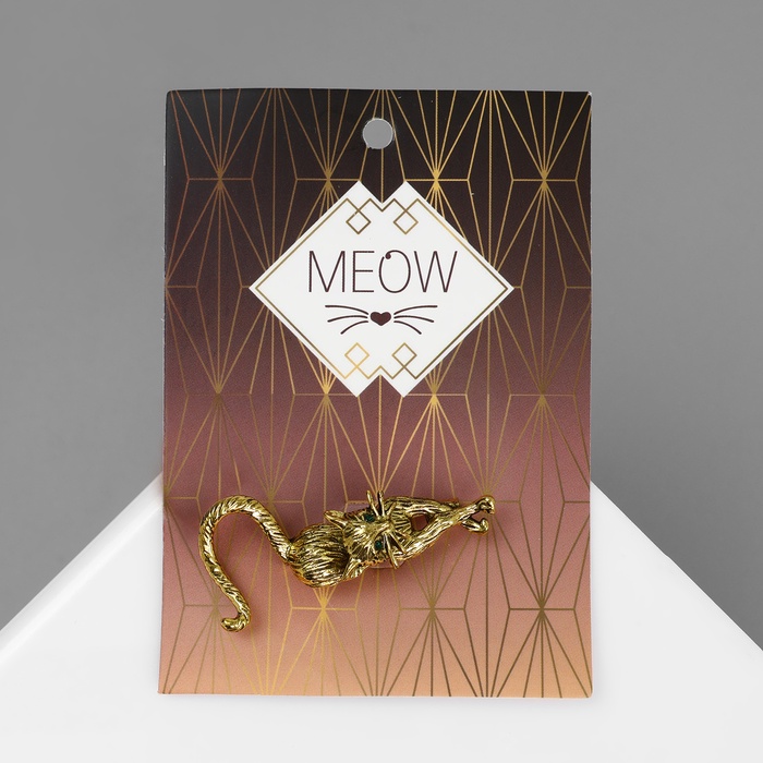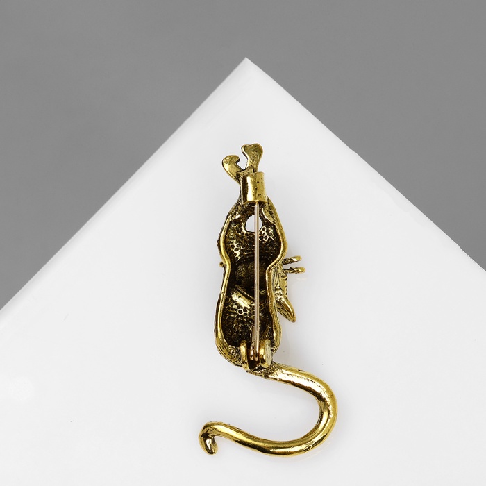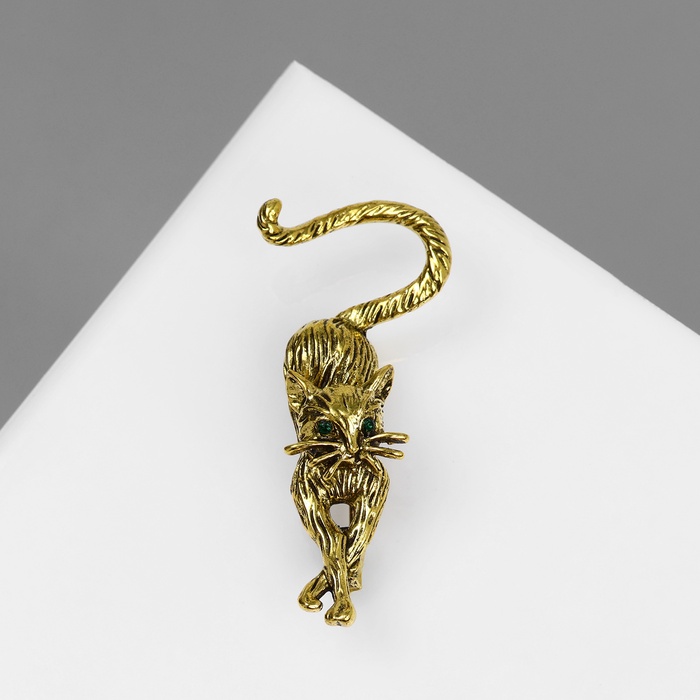 Брошь «Кошка грациозная», цвет зелёный в чернёном золоте