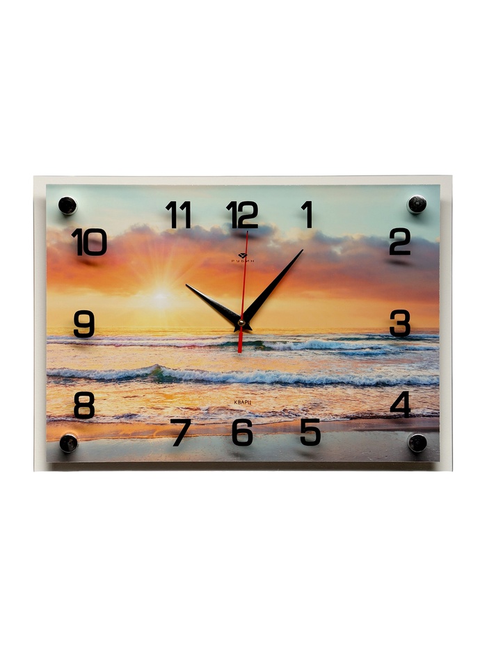 Бесшумные настенные часы - идеальное решение для создания стильного и уютного интерьера. Эти часы - настоящая находка для тех, кто ценит качество и неповторимый дизайн. Настенные часы - это не только функциональный предмет, но и настоящий декоративный аксессуар. За счёт яркого изображения с рассветом на море разнообразят любой интерьер гостиной, спальни, детской комнаты или кухни. Благодаря своему дизайну, они подчеркнут стиль и гармонию вашего дома.