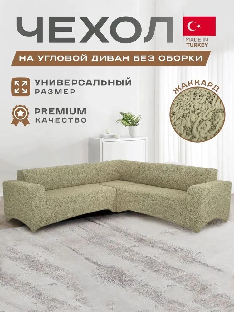 Чехол на угловой диван без оборки Жаккард,бежевый