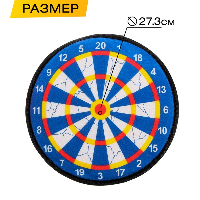 - Диаметр мишени — 27,3 см, удобный размер для размещения и игры.
