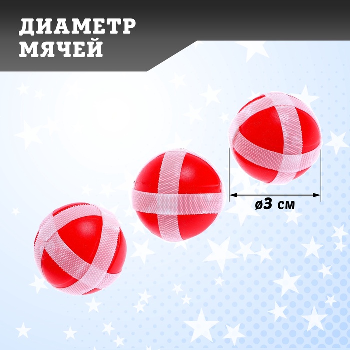 - В комплект входят 3 шарика на липучках для точного и безопасного попадания в мишень.