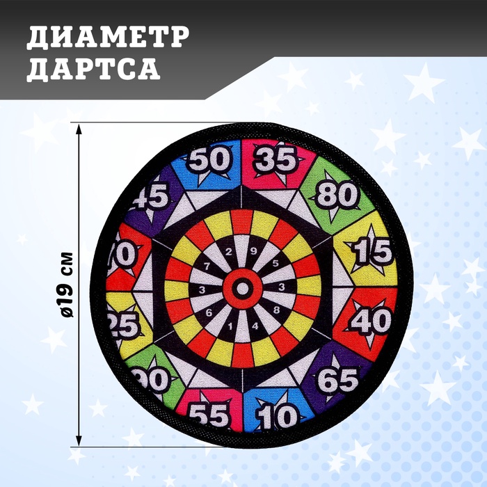 - Диаметр мишени — 19 см, что делает её компактной и удобной для размещения в любом помещении.