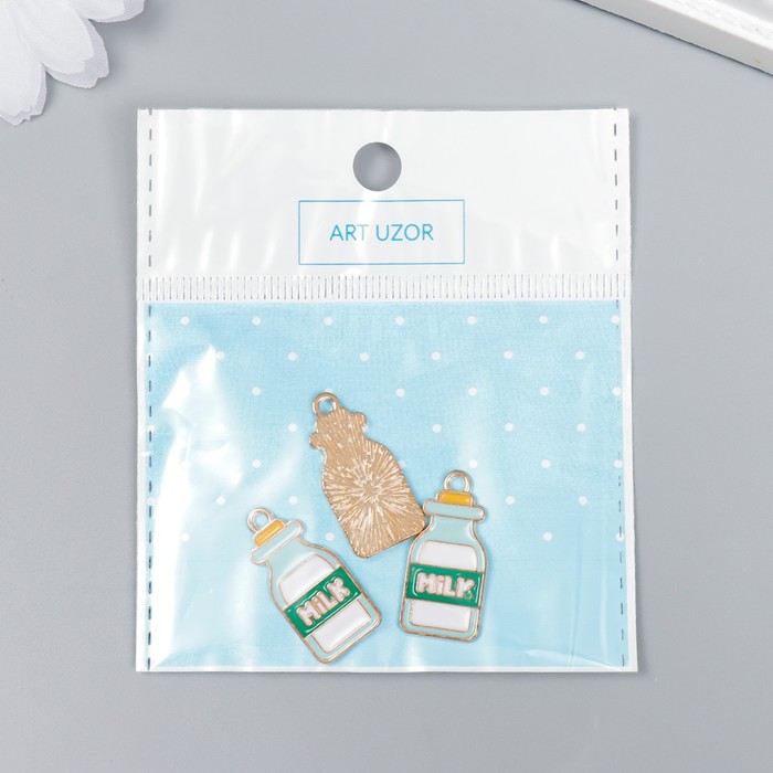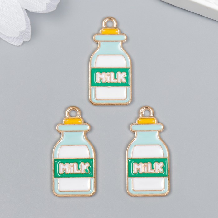 Декор для творчества металл, эмаль "Бутылка молока" 2,7х1,3 см