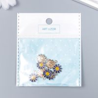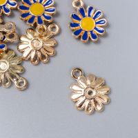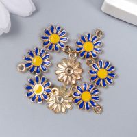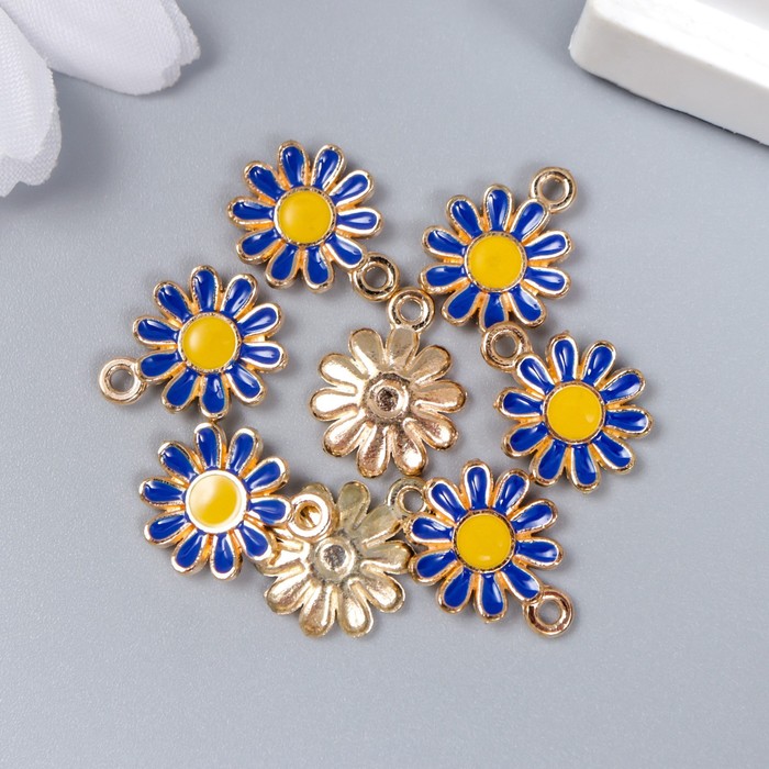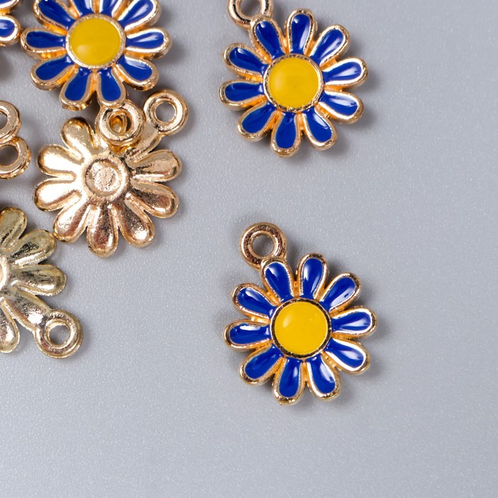 Декор для творчества металл, эмаль "Полевой цветочек" синий с золотом 1,5х1,1 см