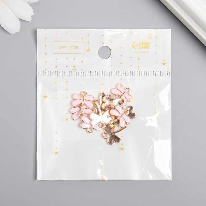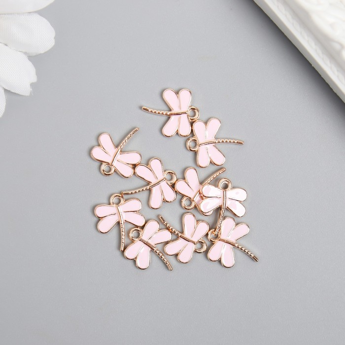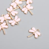 Декор для творчества металл, эмаль "Розовая стрекоза" золото 1,3х1,5 см