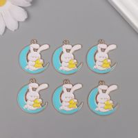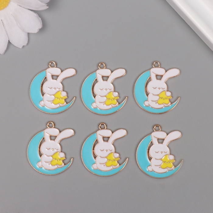 Декор для творчества металл, эмаль "Зайчик на голубом месяце" 2,9х2,5 см