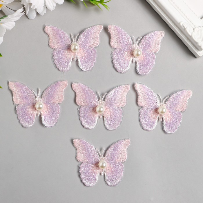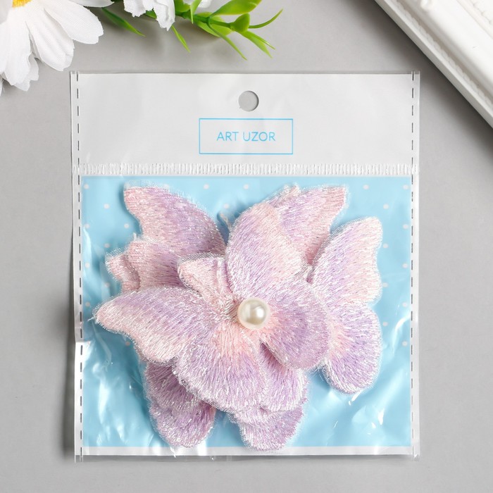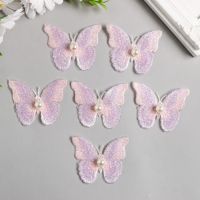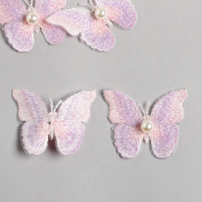 Декор для творчества текстиль вышивка "Бабочка розово-сиреневая" двойные крылья 5х6,3 см