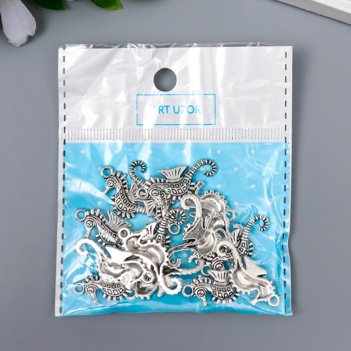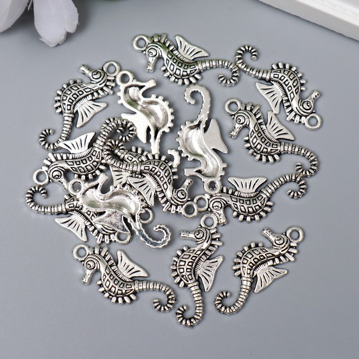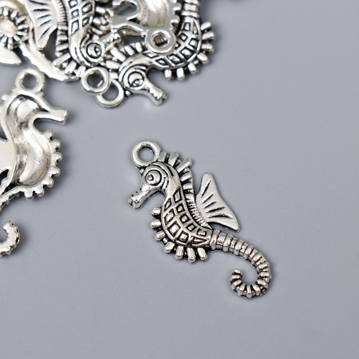 Декор металл для творчества "Морской конёк" серебро G142B709 2,9х1,2 см