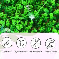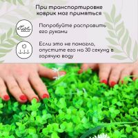 При транспортировке коврик мог примяться и зелень может выглядеть не такой объёмной и пушистой как на фото. Чтобы исправить ситуацию, разверните коврик, дайте ему отлежаться и попробуйте распушить зелень руками. Если это не помогло, опустите на 30 секунд коврик в горячую воду. После этой процедуры все листочки должны расправиться.