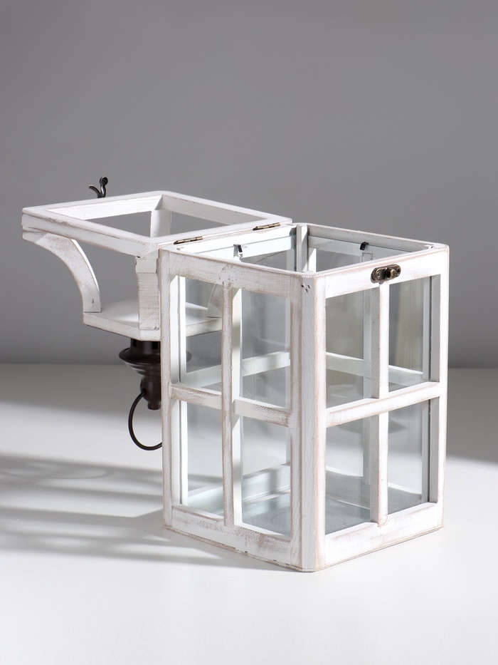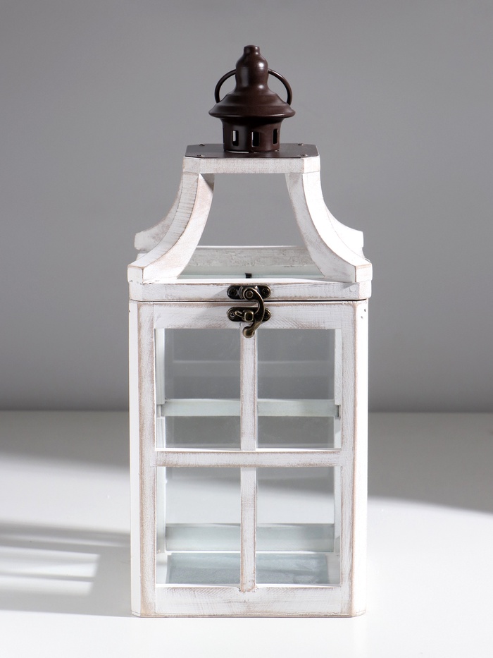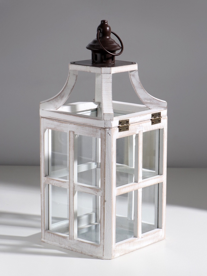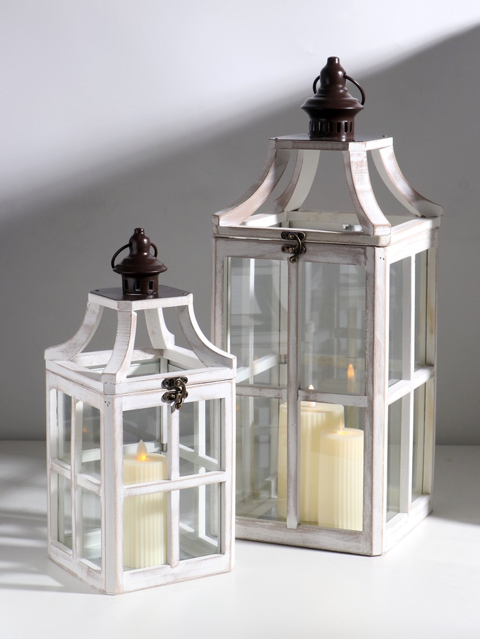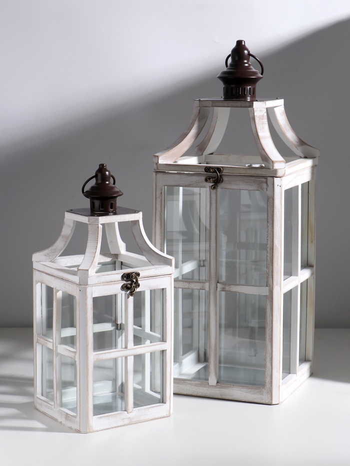 Деревянный подсвечник-фонарь на 1 свечу «Веранда», набор 2 шт., белый состаренный, 35?15?15 см; 53?20?20 см