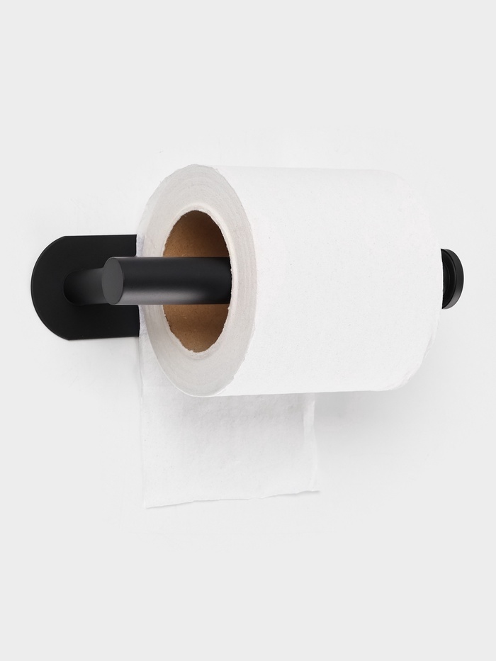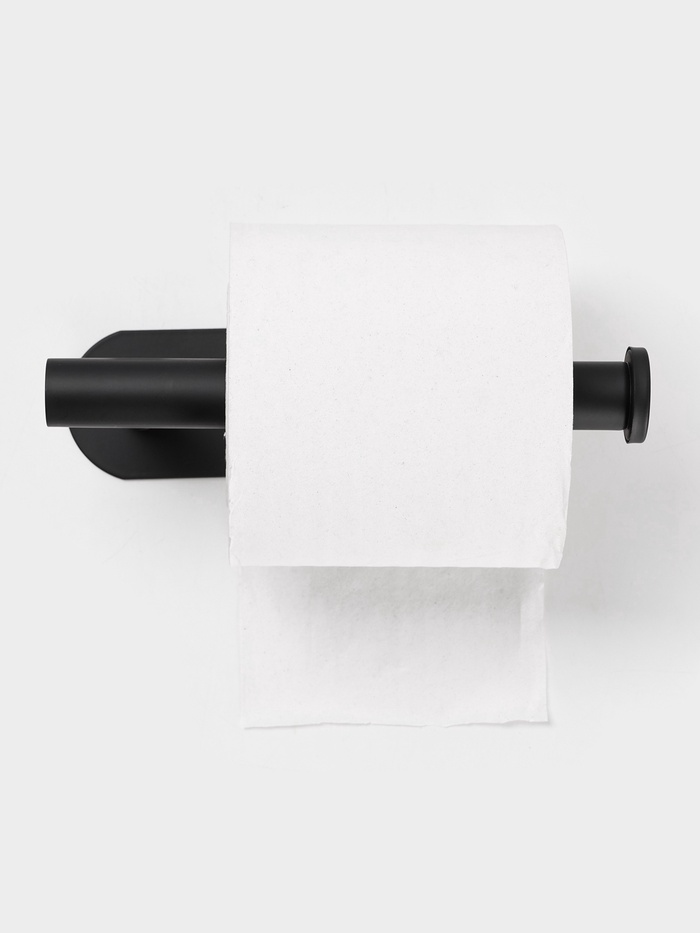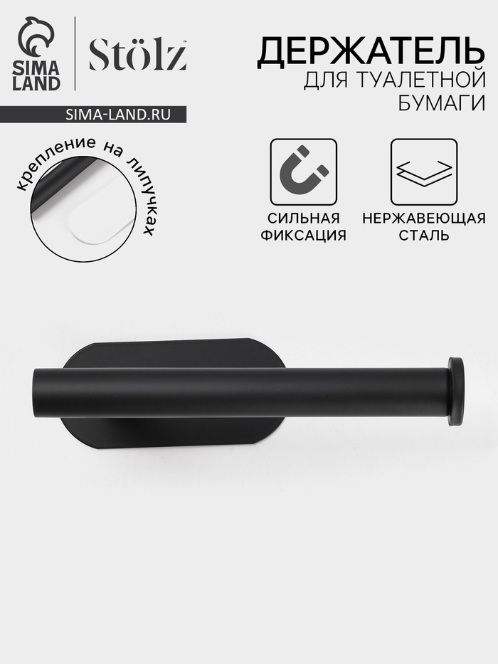Держатель для туалетной бумаги на липучке St?lz в черном исполнении. Лаконичное и функциональное решение для современной ванной комнаты. Изготовлен из нержавеющей стали с матовым черным покрытием. Все необходимые крепления уже входят в комплект.