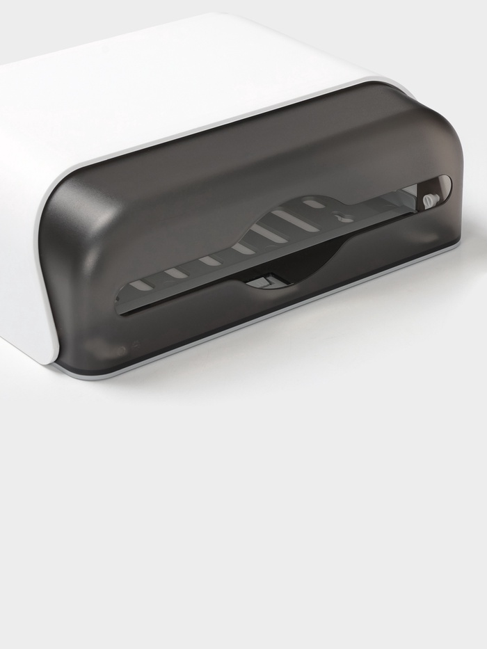 Настенный диспенсер для бумажных полотенец в листах. Элегантное белое решение для поддержания чистоты и порядка. Комплектуется креплениями и ключом для простого монтажа. Работает без источника питания — экономичный и автономный. Универсальная система H3 совместима с полотенцами типа V и Z сложения.