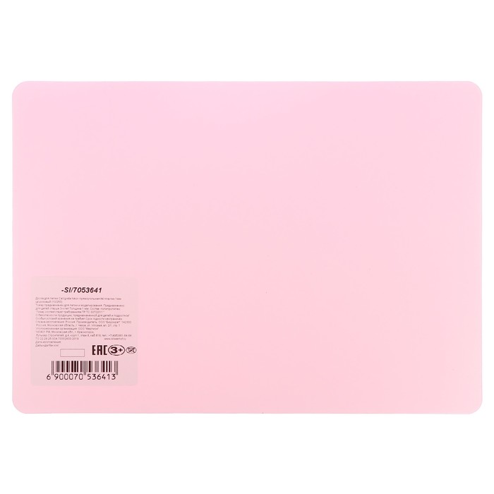 Доска для лепки Calligrata убережет стол от намокания и загрязнений, оставленных пластилином, глиной, красками, фломастерами и прочими красящимися предметами. Производится из жесткого прочного пластика толщиной 1000 мкм, к которому не липнет пластилин. Гладкая фактура материала устойчива к царапинам.