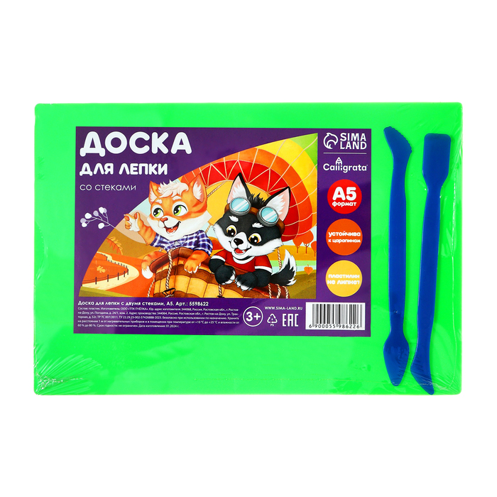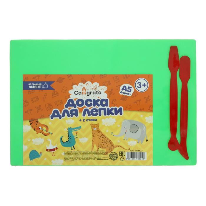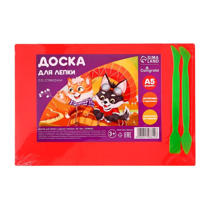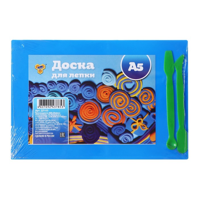 Имеет закругленные углы для безопасности маленького скульптора. Изготовлена из безопасного полистирола, устойчивого к царапинам, к которому не липнет пластилин. Упакована в термоусадочную пленку с ярким вкладышем и двумя цветными стеками.