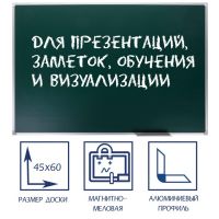 Доска магнитно-меловая, 45х60 см, ЗЕЛЁНАЯ, Calligrata СТАНДАРТ, в алюминиевой рамке, с полочкой