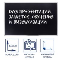 Доска магнитно-меловая, 60х90 см, ЧЁРНАЯ, Calligrata СТАНДАРТ, в алюминиевой рамке, с полочкой