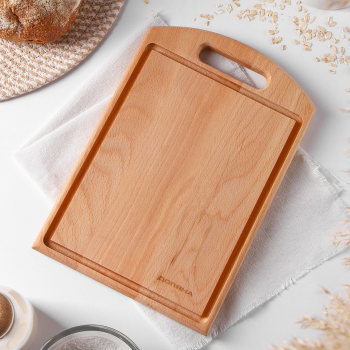 Доска разделочная Доляна «БУКовский», 30?20?2 см, бука, с ручкой и кровостоком, бук