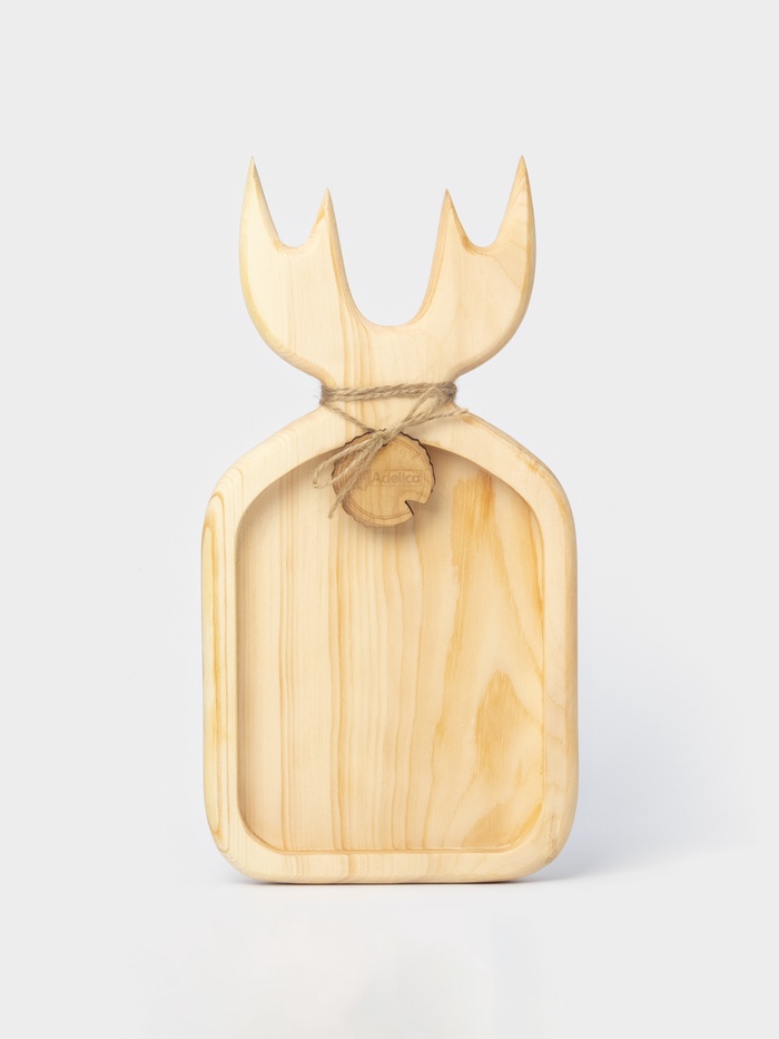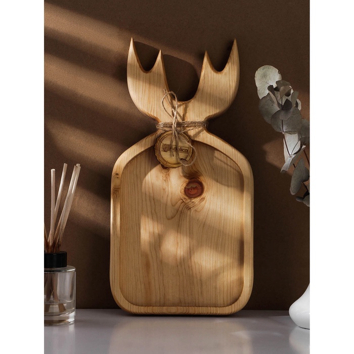 Доска разделочная деревянная авторская Adelica «Рога», 35?18?2,5 см, цельный массив кедра, цвет молочный