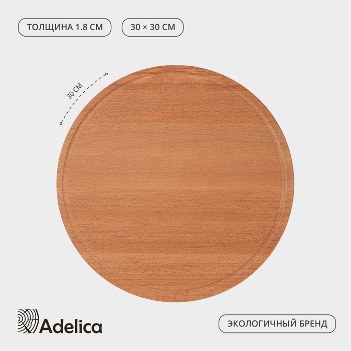 Доска разделочная деревянная с кровостоком Adelica, d=30 см, бук