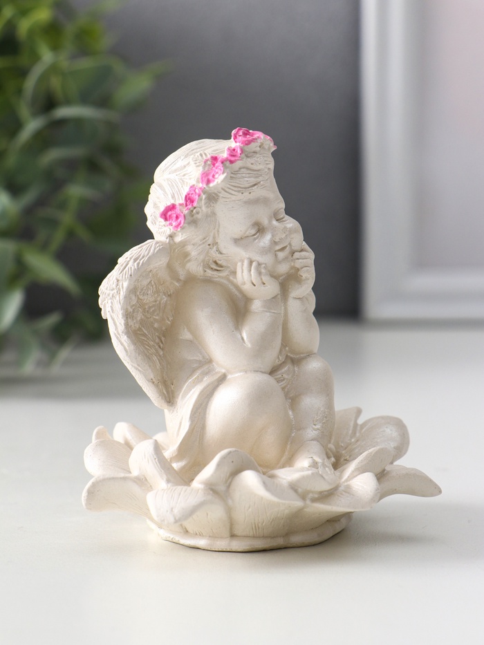 Фигурка гипс «Ангел на цветке», 8.5?7.5?7 см, перламутр