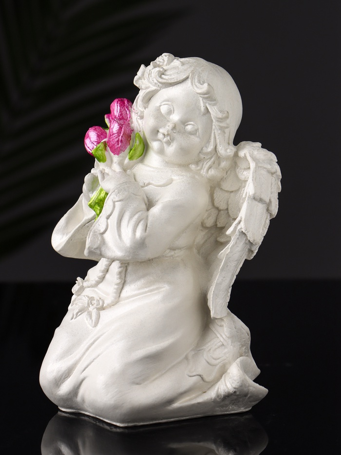 Фигурка гипс «Ангел с букетиком», 15?8?9 см, перламутр