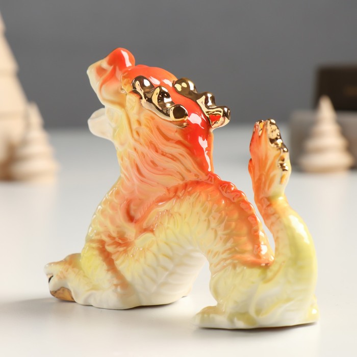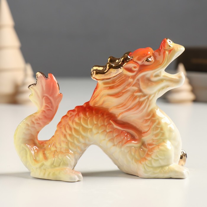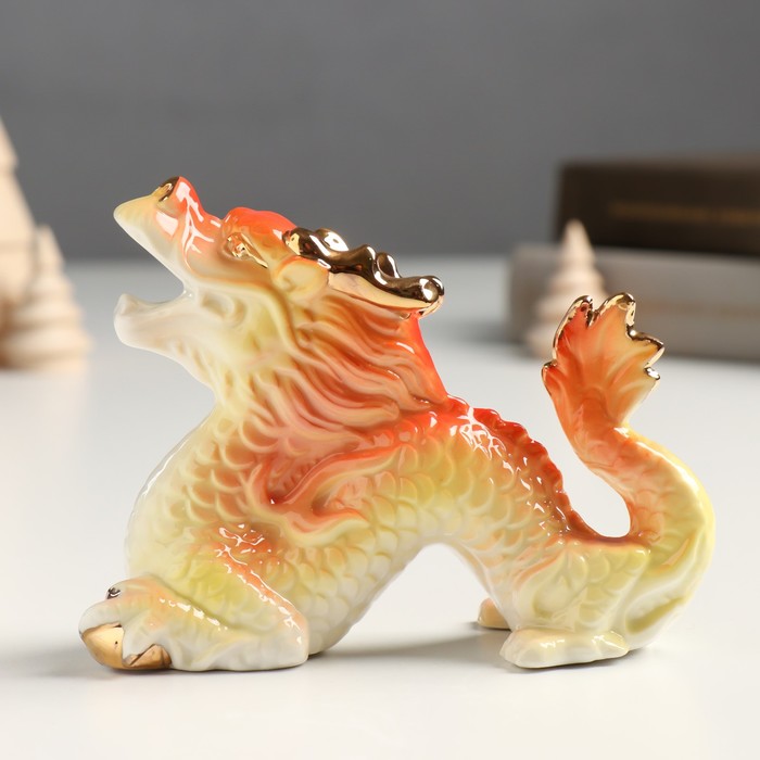 Фигурка керамика «Китайский огненный дракон рычит», с золотом, 5?12?9 см