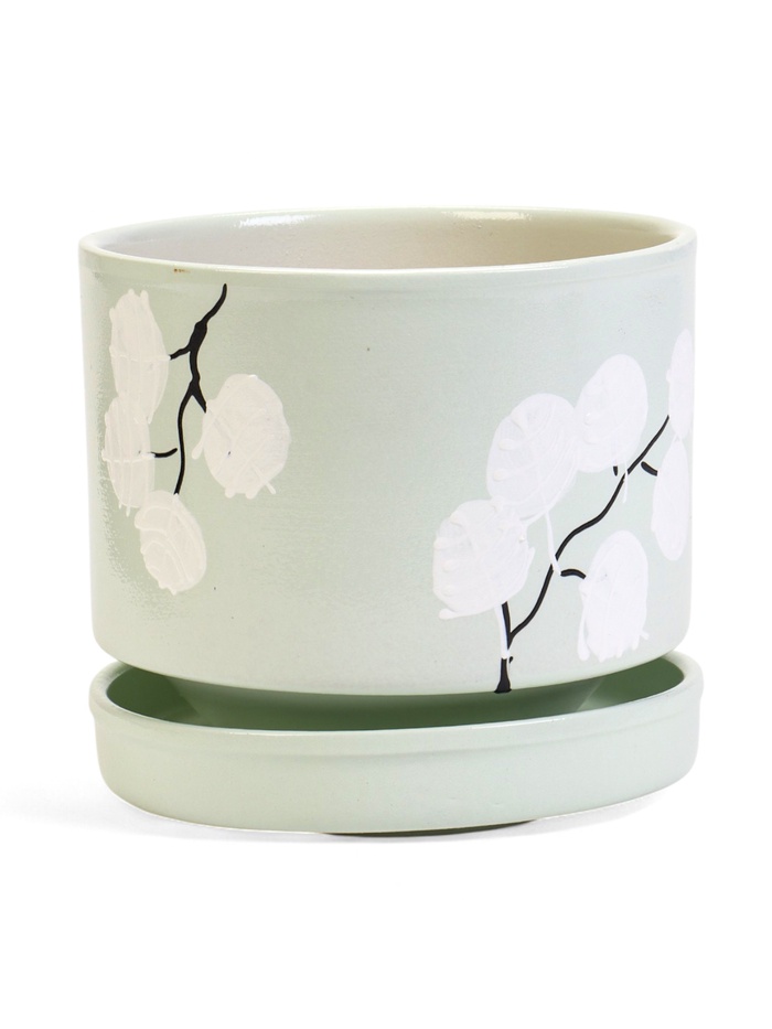 Керамический горшок «Листья» с поддоном — это гармоничное сочетание японской эстетики и практичности. Минималистичный рисунок ветви подчеркивает естественную красоту растений, создавая ощущение единства с природой.