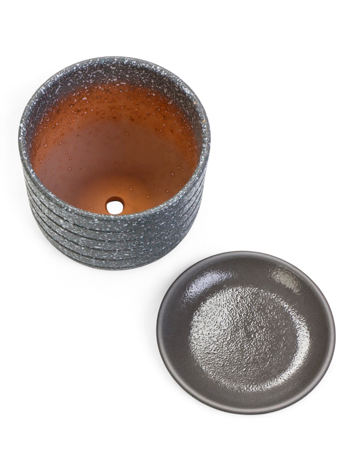 - Сдержанный дизайн: Спокойный серый цвет и лаконичная форма делают этот горшок нейтральным элементом, который подчеркивает естественную красоту растения, не отвлекая на себя внимание.
