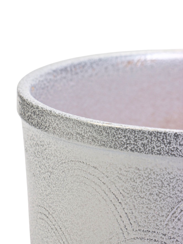 - Глянцевая поверхность с рельефным узором. Рисунок из дуг создает интересную игру света на поверхности. Керамика обеспечивает естественный воздухообмен для корневой системы.