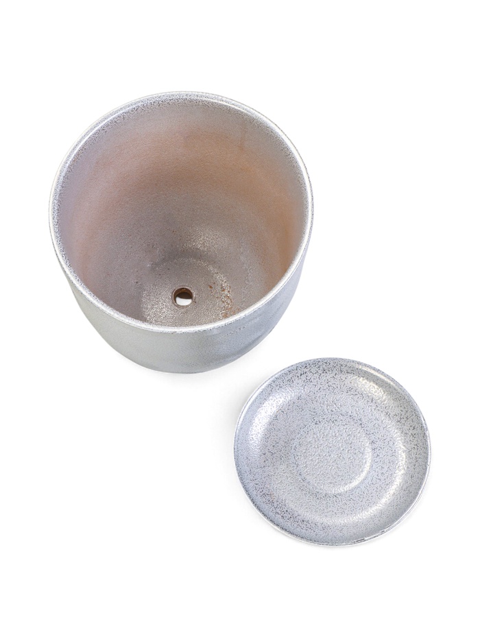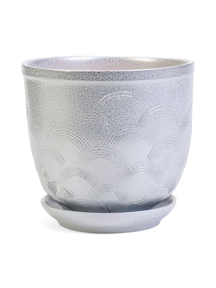 Керамический горшок «Узор» с поддоном — это компактное решение с современным дизайном. Геометрический рельеф и металлический отблеск создают стильный акцент для небольших растений.
