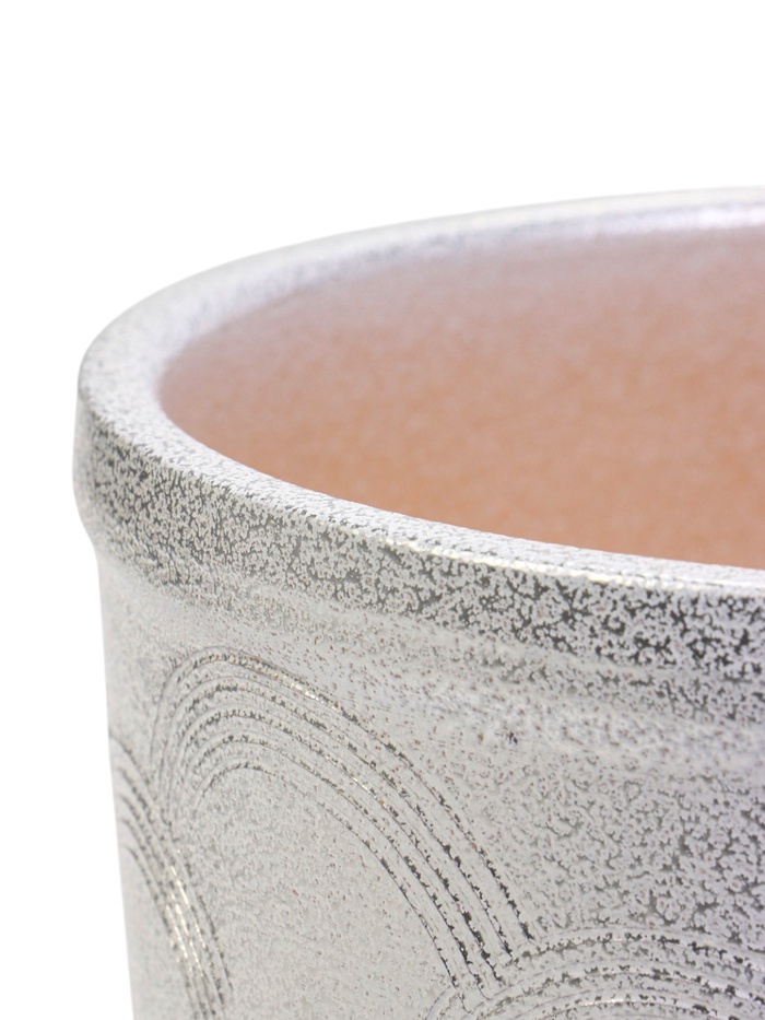 • Глянцевая поверхность с узором. Рельефный рисунок из дуг создает интересную игру света на поверхности. Керамика обеспечивает естественный воздухообмен для корневой системы растений.