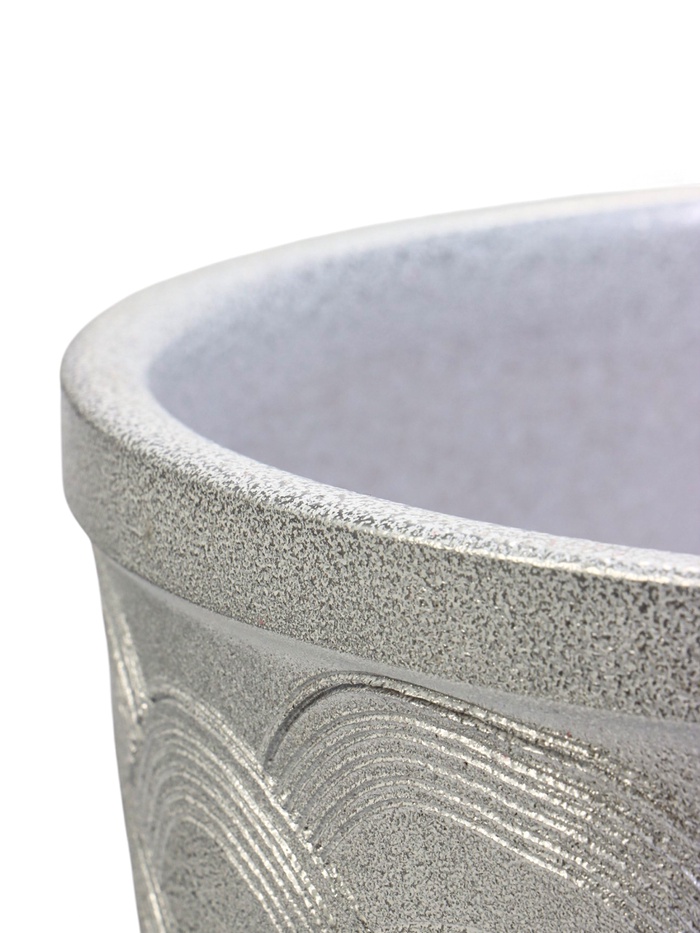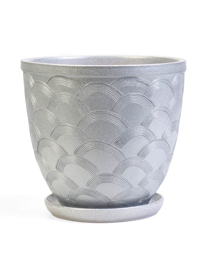 • Глянцевая керамика с геометрическим узором. Поверхность покрыта рельефным рисунком из дуг, который создает интересный световой эффект. Керамика обеспечивает стабильный микроклимат для корневой системы растений.